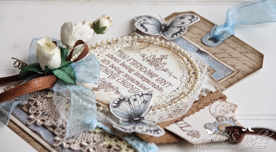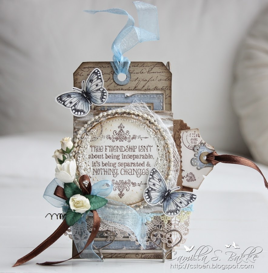 Tagen er en DooHickey's fra Magnolia-Tilda Tag. Mens den store tagen er stanset ut fra Tag & Bookplates diesen til Sizzix.