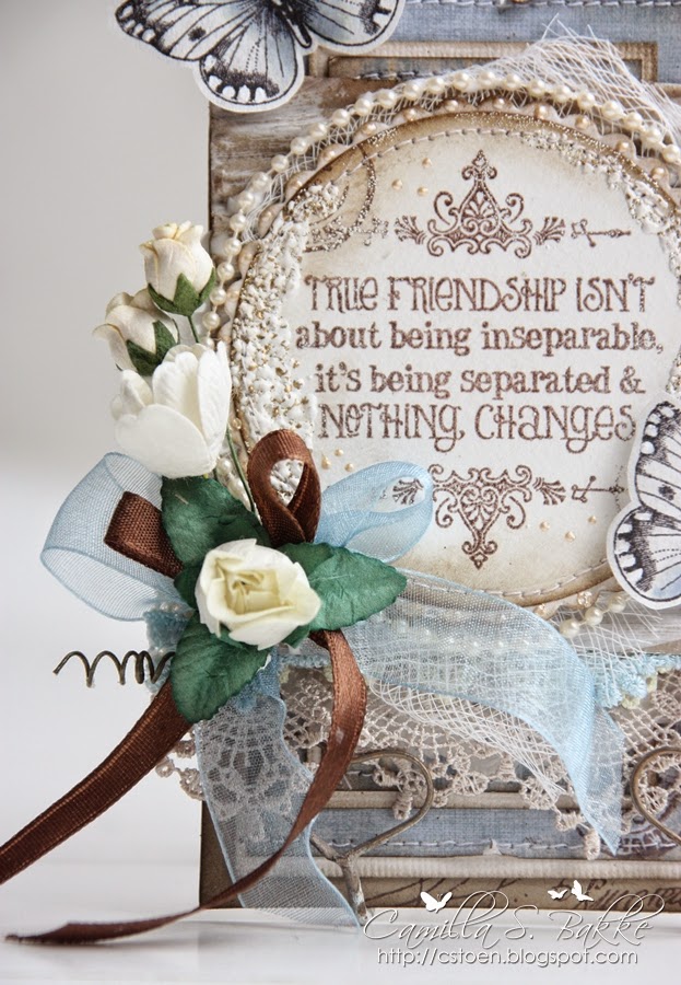 Around the sentiment I have used Frantage-Shabby White. The edges are inked with Walnut Stain.