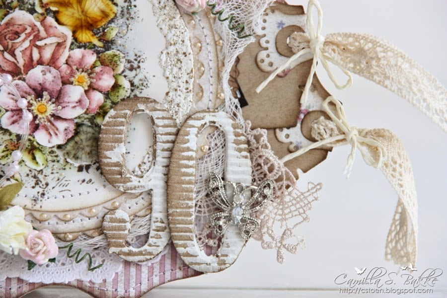 Tallet 90 er staset ut fra en Sizzix die og heter Antiqua Numbers. Jeg har malt på litt Crackle Paint - Picket Fence på bølgepappen. Og limt på en liten sommerfugl.