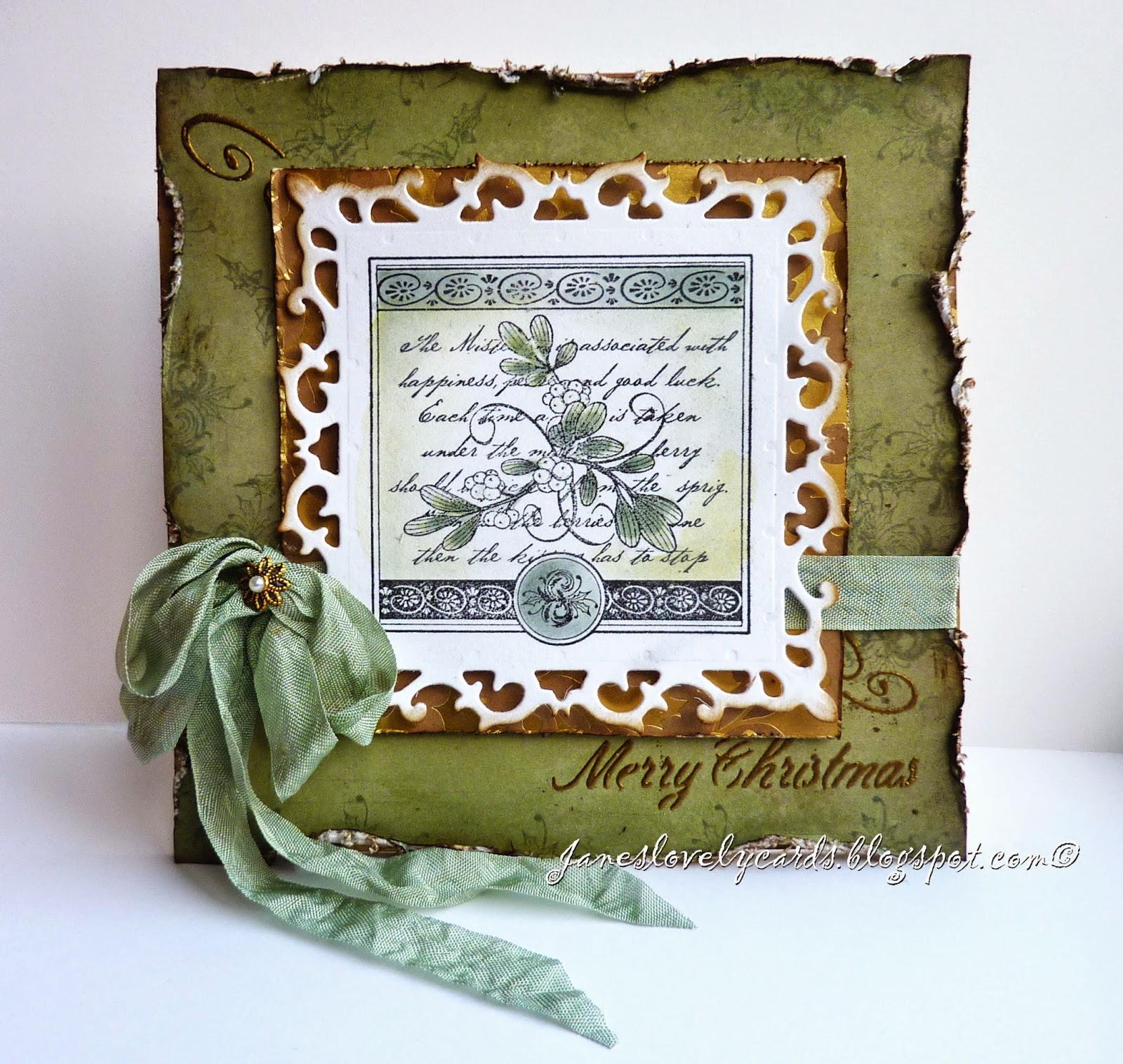 I have embossed the sentiment and some of the scrolls with gold embossing powder.