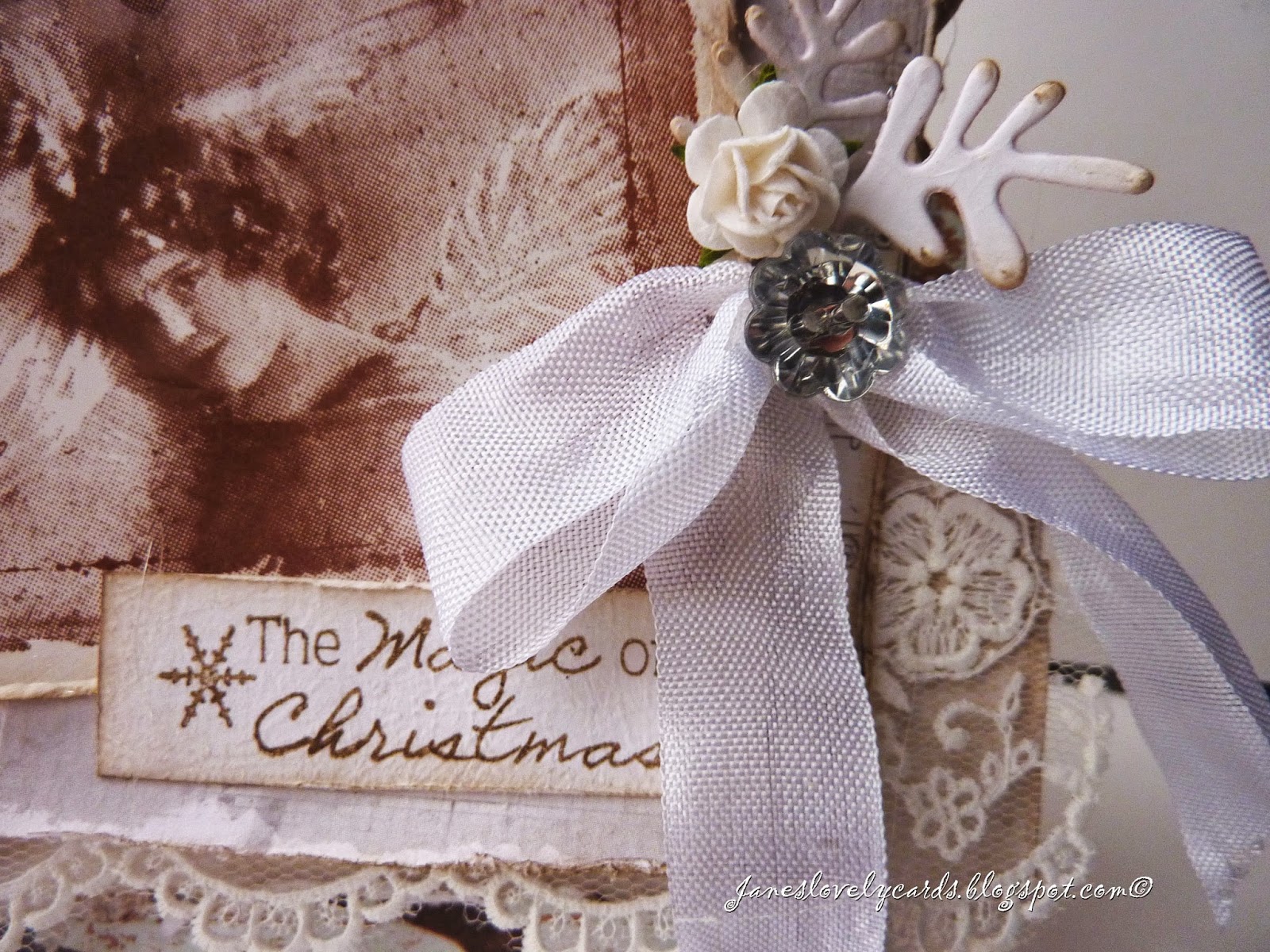 All of the embellishments are from The Ribbon Girl except the poinsettia which I have made using a Doohickey die.