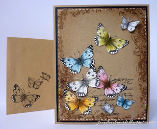 I also decorated the envelope with the butterfly stamps and again added markings with a white gel pen.