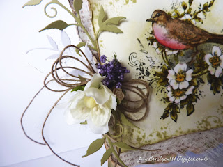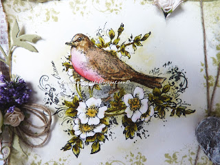 As always I have painted with Distress Inks. The stamping around the edge of the image mat is also a stamp from the Vintage Garden set. This has been stamped with Old Paper Distress Ink.