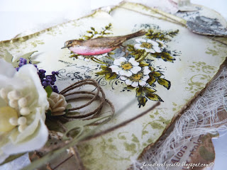 I have added some flowers, cheesecloth and twine from The Ribbon Girl.